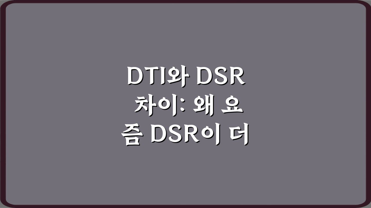 **메타 설명:** DTI와 DSR의 핵심 차이를 3가지 비교로 파헤칩니다. 요즘 대출 심사에서 DSR이 왜 실질적인 상환 능력을 보여주며 더 중요해졌는지 지금 확인하세요! (96자)