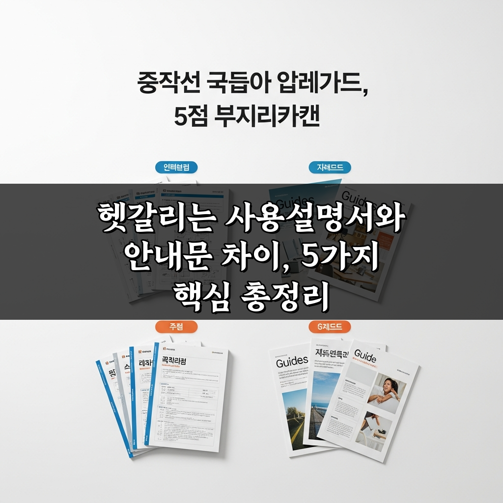 다음은 메타 설명 후보 2가지입니다. **후보 1 (90자)** 사용설명서와 안내문, 항상 헷갈리셨나요? 이젠 완벽히 구분하세요! 5가지 핵심 차이점을 명확히 정리하여 정확한 문서 활용법을 알려드립니다. **후보 2 (95자)** 사용설명서와 안내문의 미묘한 차이, 아직도 헷갈…