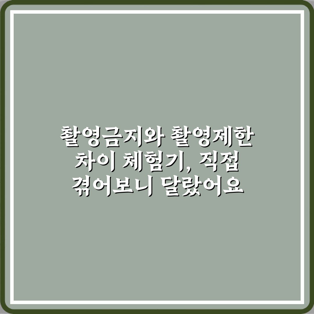 촬영금지와 촬영제한 차이 체험기, 직접 겪어보니 달랐어요 2026년 04월 17일 by 관리자 촬영금지와 촬영제한의 차이를 직접 체험하며 알게 된 생생한 경험담! 현장에서의 실제 느낌을 확인해보세요.