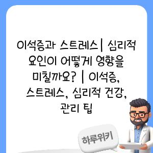 이석증스트레스| 심리적 요인이 어떻게 영향을 미칠까요? | 이석증, 스트레스, 심리적 건강, 관리 팁