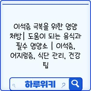 이석증 극복을 위한 영양 처방| 도움이 되는 음식과 필수 영양소 | 이석증, 어지럼증, 식단 관리, 건강 팁