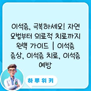 이석증, 극복하세요! 자연 요법부터 의료적 치료까지 완벽 가이드 | 이석증 증상, 이석증 치료, 이석증 예방