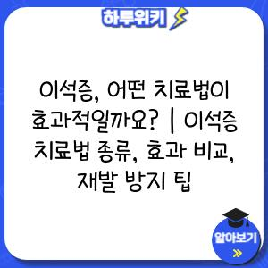 이석증, 어떤 치료법이 효과적일까요? | 이석증 치료법 종류, 효과 비교, 재발 방지 팁