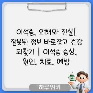 지금 바로 이 글을 통해 이석증에 대한 진실을 확인하고, 건강한 삶으로 나아가세요.