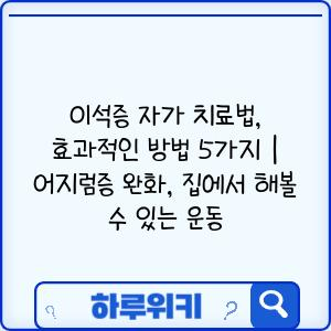 이석증 자가 치료는 전문의의 지시를 따라야 효과적이며, 이석증의 증상 완화에 도움을 줄 수 있습니다.