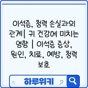 이석증, 청력 손실과의 관계| 귀 건강에 미치는 영향 | 이석증 증상, 원인, 치료, 예방, 청력 보호