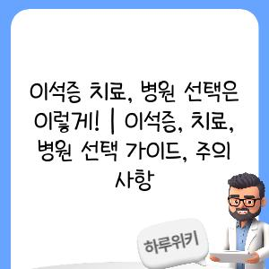 이석증 치료, 병원 선택은 이렇게! | 이석증, 치료, 병원 선택 가이드, 주의 사항