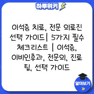 이석증 치료, 전문 의료진 선택 가이드| 5가지 필수 체크리스트 | 이석증, 이비인후과, 전문의, 진료 팁, 선택 가이드