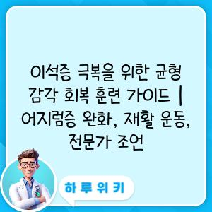이석증 극복을 위한 균형 감각 회복 훈련 가이드 | 어지럼증 완화, 재활 운동, 전문가 조언